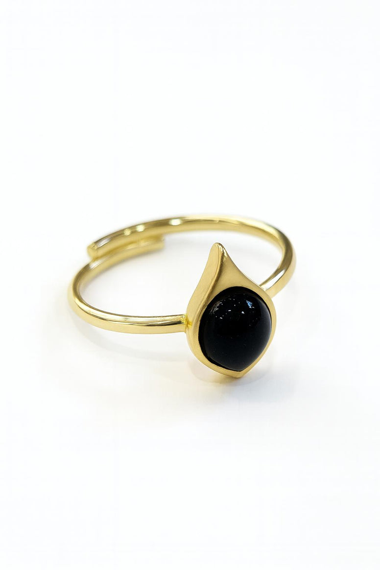 ANILLO DORADO CON PIEDRA NEGRA