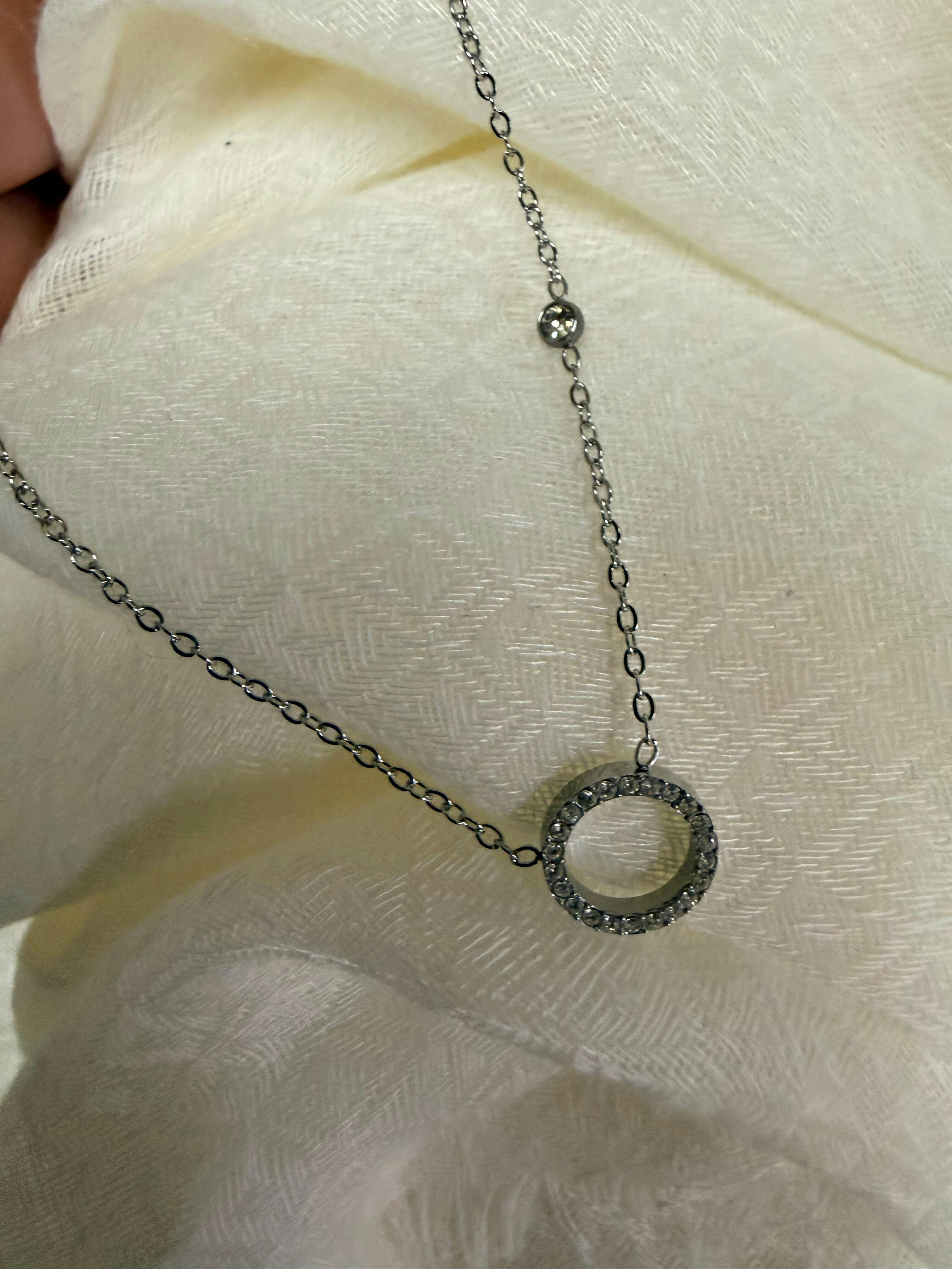 COLLAR PLATEADO CIRCULO Y PIEDRAS