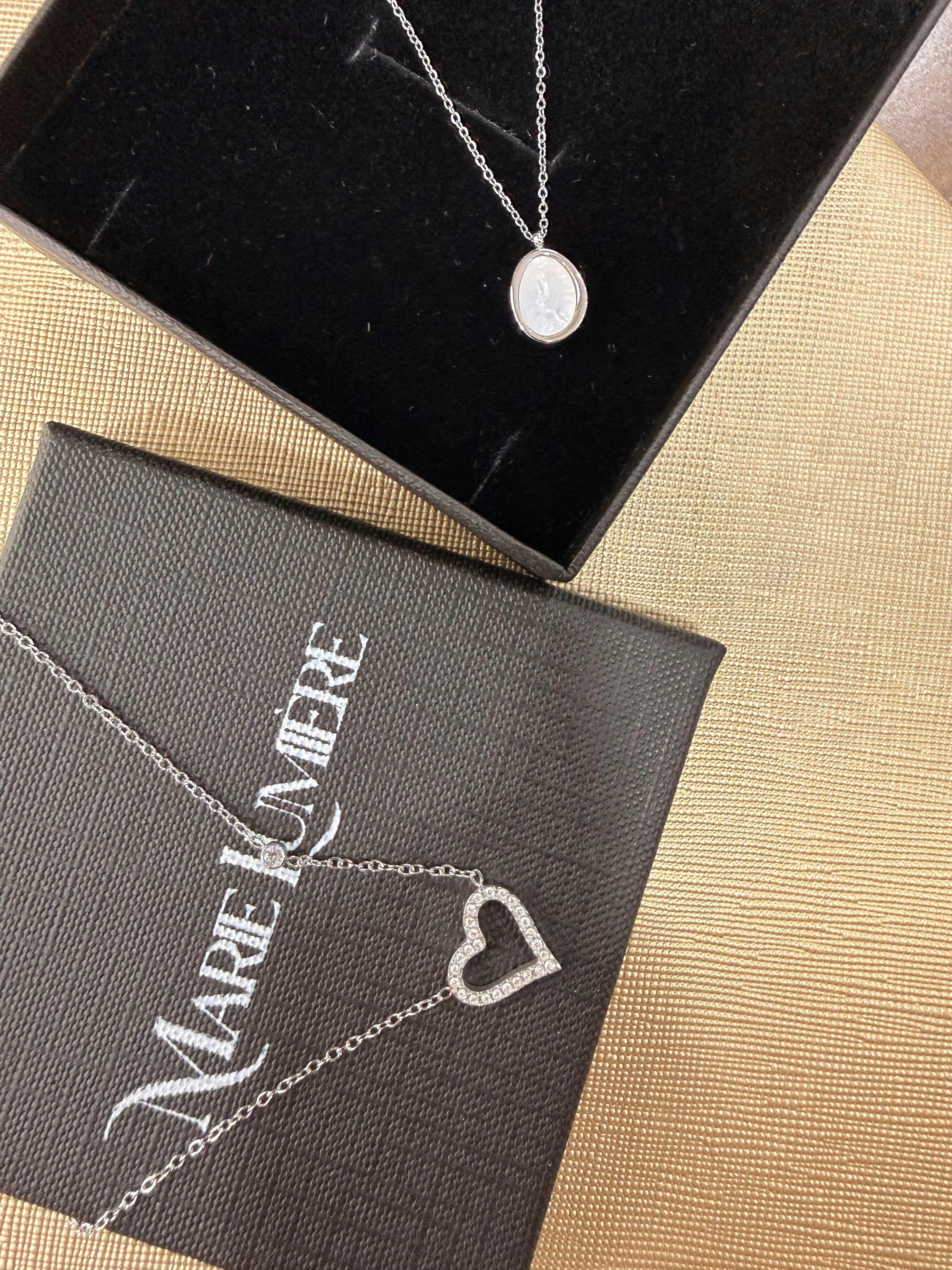 COLLAR PLATEADO CORAZÓN Y PIEDRAS