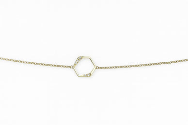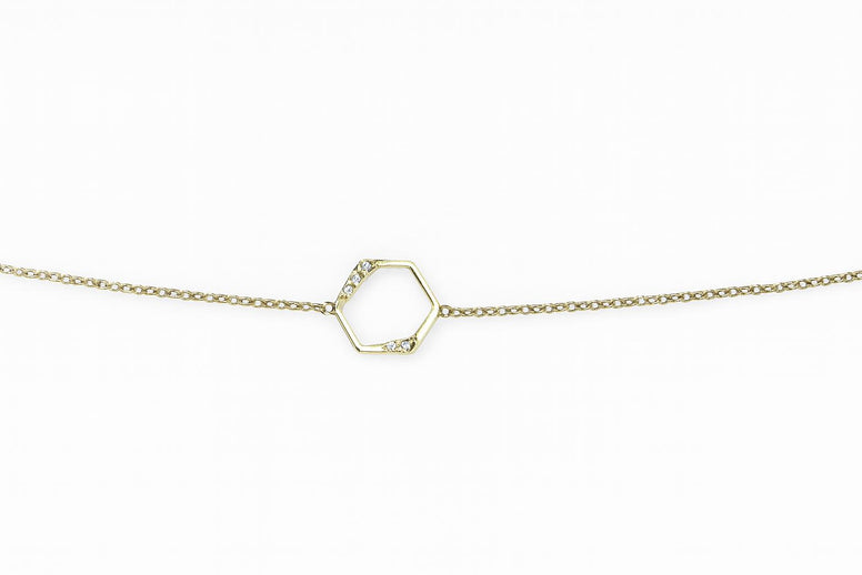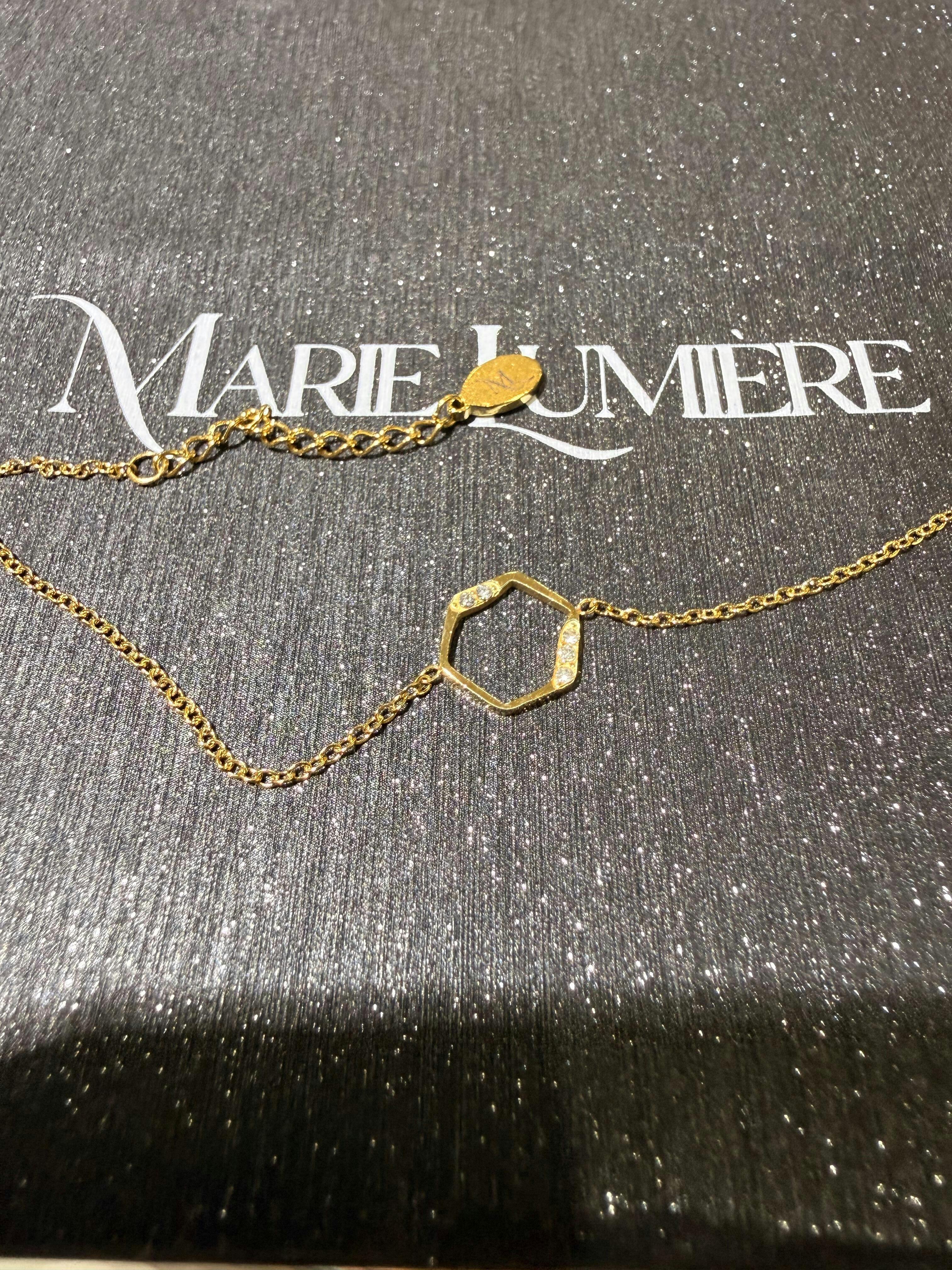 Hexágono de acero bañado en oro y las piedras son circonitas